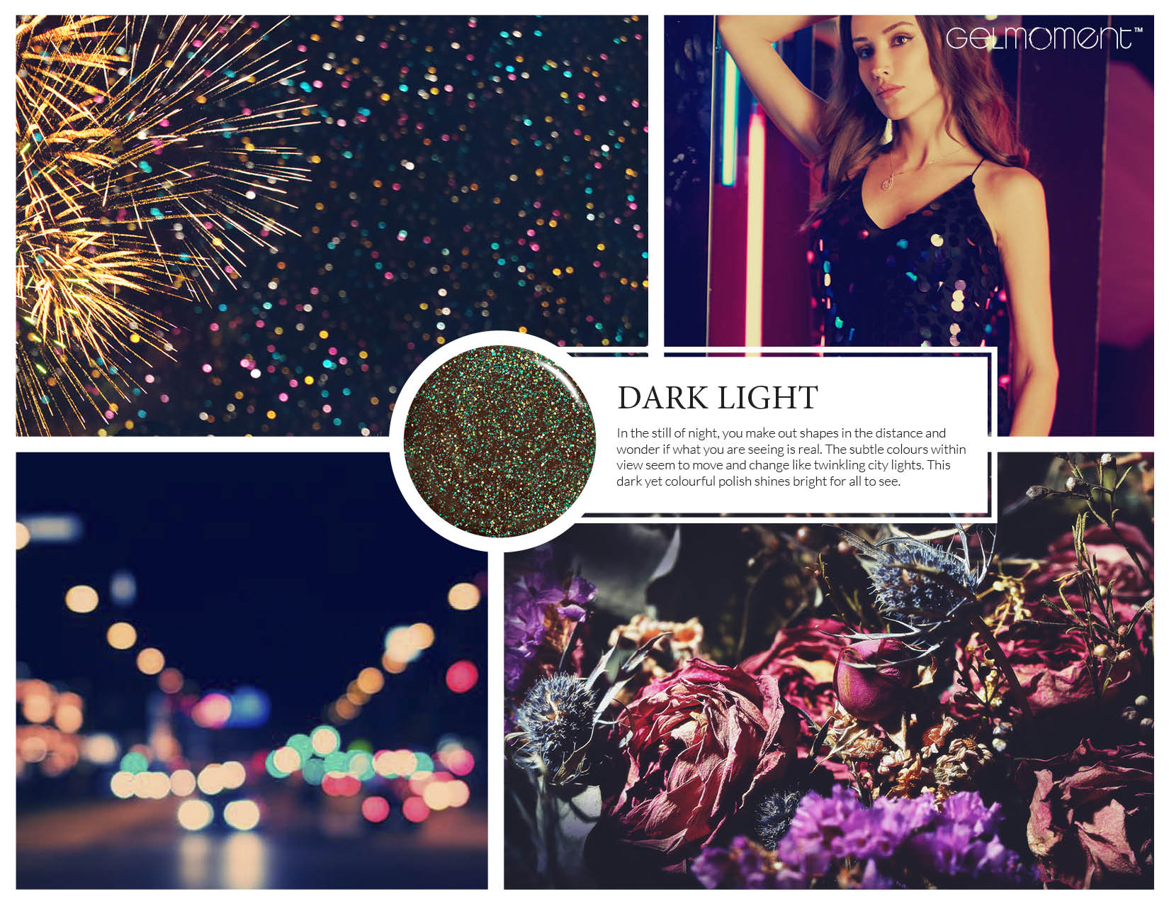 This black-tinted polish twinkles with multicolour sparkles.